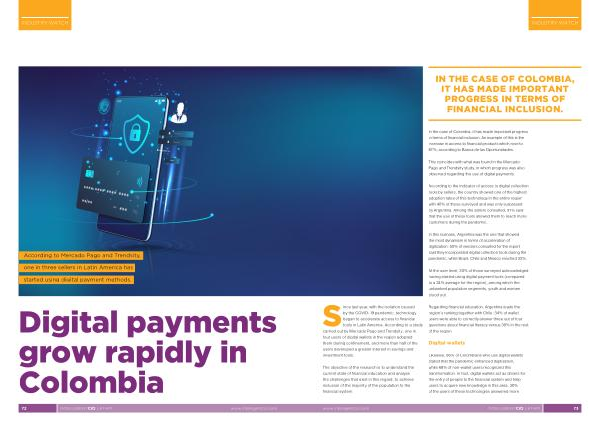Likewise , 86 % of Colombians who use digital wallets stated that the pandemic enhanced digitization , while 68 % of non-wallet users recognized this transformation . In fact , digital wallets act as drivers for the entry of people to the financial system and help users to acquire new knowledge in this area . 30 % of the users of these technologies answered more