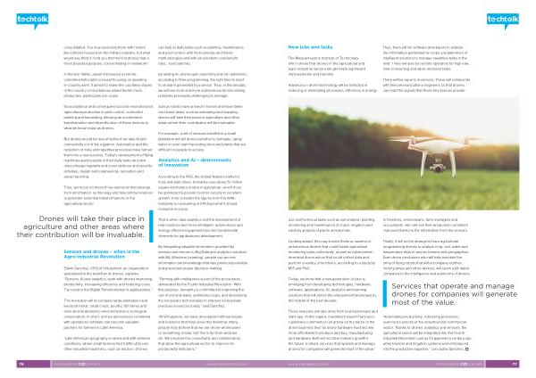“ Automating productivity , robotizing processes , seem to be actions of the industrial and commercial sector . Thanks to drones , analytics and sensors , the agricultural sector will be integrated into the Fourth Industrial Revolution , just as it happened a century ago when tractors and irrigation systems were introduced into the productive equation ,” concludes Sanchez . p