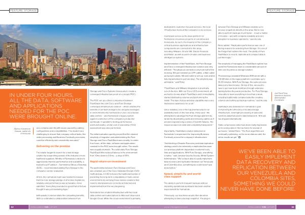 Pérez added : “ Replication performance was one of the big reasons for selecting Pure Storage : It is one of the things that I admire the most . The ability of Pure FlashStack to record , replicate and compact data is just like magic .”