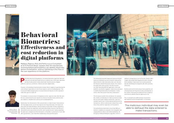 Through behavioral biometrics more than 200 user behavior variables are evaluated , from navigation and usage pattern to device and network attributes . All through an Artificial Intelligence algorithm , which in addition to assigning a score for the risk of fraud , offers insights that explain what triggered the alert , allowing the knowledge of fraud cases and modus operandi , and also facilitating the integration with other solutions of this kind .