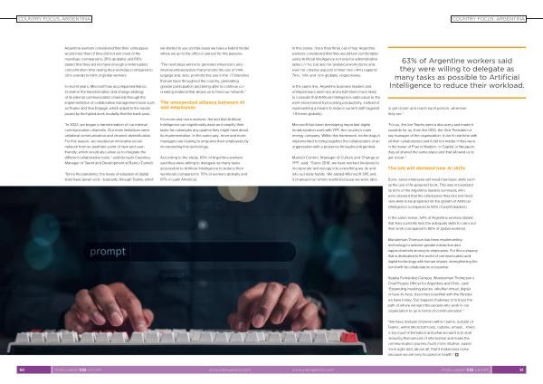 According to the study , 63 % of Argentine workers said they were willing to delegate as many tasks as possible to Artificial Intelligence to reduce their workload ( compared to 70 % of workers globally and 67 % in Latin America ).