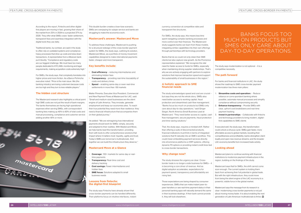 Mastercard says the message from its research is clear: modernizing cross-border payments is not just about moving money faster. It is about enabling the next generation of Latin American multinationals to thrive. p www. intelligentcio. com INTELLIGENTCIO LATAM 27