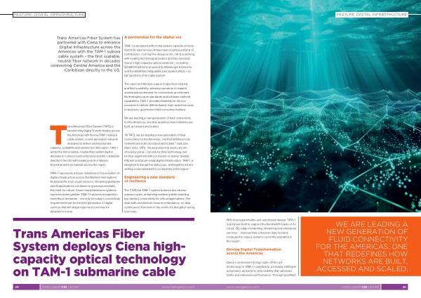 Trans Americas Fiber System has partnered with Ciena to enhance Digital Infrastructure across the Americas with the TAM-1 subsea cable system – the first scalable, neutral fiber network in decades connecting Central America and the Caribbean directly to the US.