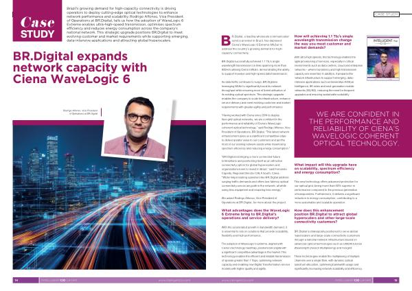 Brazil’ s growing demand for high-capacity connectivity is driving operators to deploy cutting-edge optical technologies to enhance network performance and scalability. Rodrigo Alfonso, Vice President of Operations at BR. Digital, tells us how the adoption of WaveLogic 6 Extreme enables ultra-high-speed transmission, optimises spectrum efficiency and reduces energy consumption across the company’ s national network. This strategic upgrade positions BR. Digital to meet evolving customer and market requirements while supporting emerging, data-intensive applications and attracting global hyperscalers.