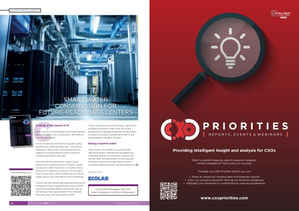 Today, power is the number-one source limiting data-center growth. Depending on geography and computing demand, increased water requirements can also strain local watersheds. Conserving power and water is paramount for data centers to gain a competitive edge and improve operational efficiency. p
