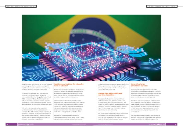 FEATURE: ARTIFICIAL INTELLIGENCE reviews and widespread gains in operational efficiency. Many organisations are also launching internal AI training programmes to scale the use of Agentspace across different business units.
