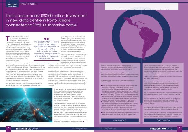 TPOA1 will serve big tech companies, digital content firms, cloud providers and enterprise customers, expanding the supply of digital infrastructure in southern Brazil. With this investment, Tecto is strengthening Porto Alegre’ s digital ecosystem and consolidating the city’ s role as a hub for connectivity and data infrastructure.